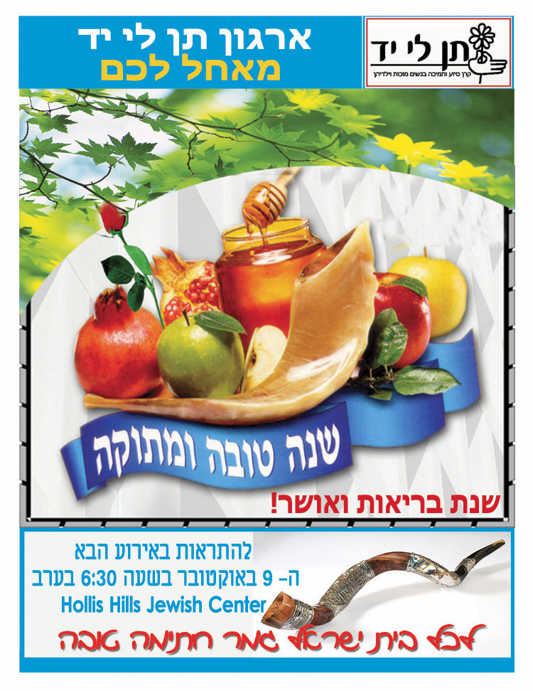 Ten Li Yad is a non profit organization and received the 501(c)3. Contributions are tax deductible as permitted by law.