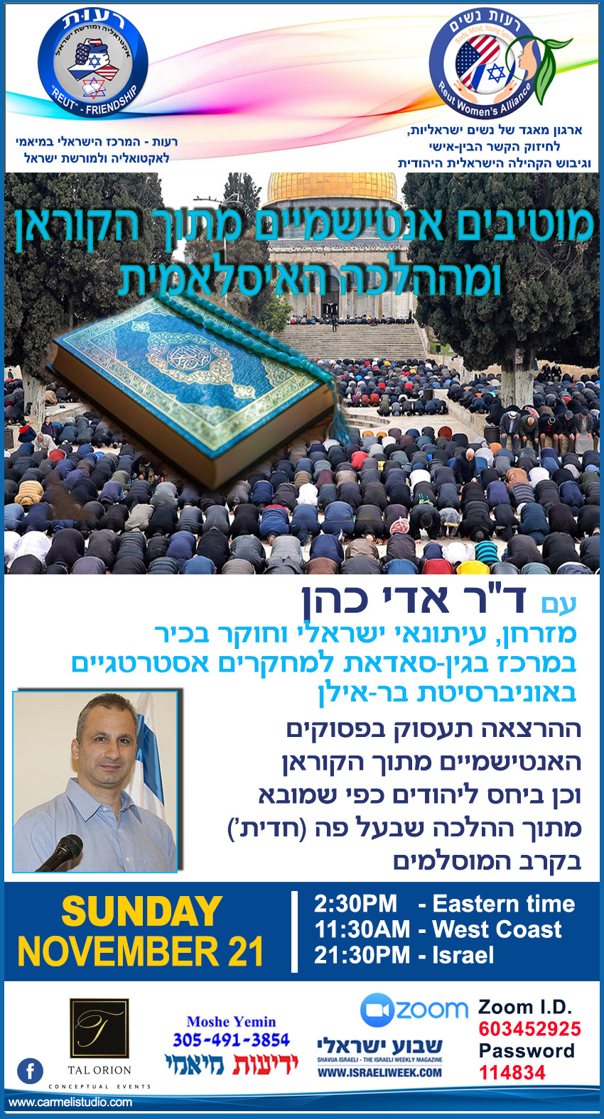 במידה ותתבקשו להכניס סיסמא: 114834 (Zoom I.D. 603-452-925)
