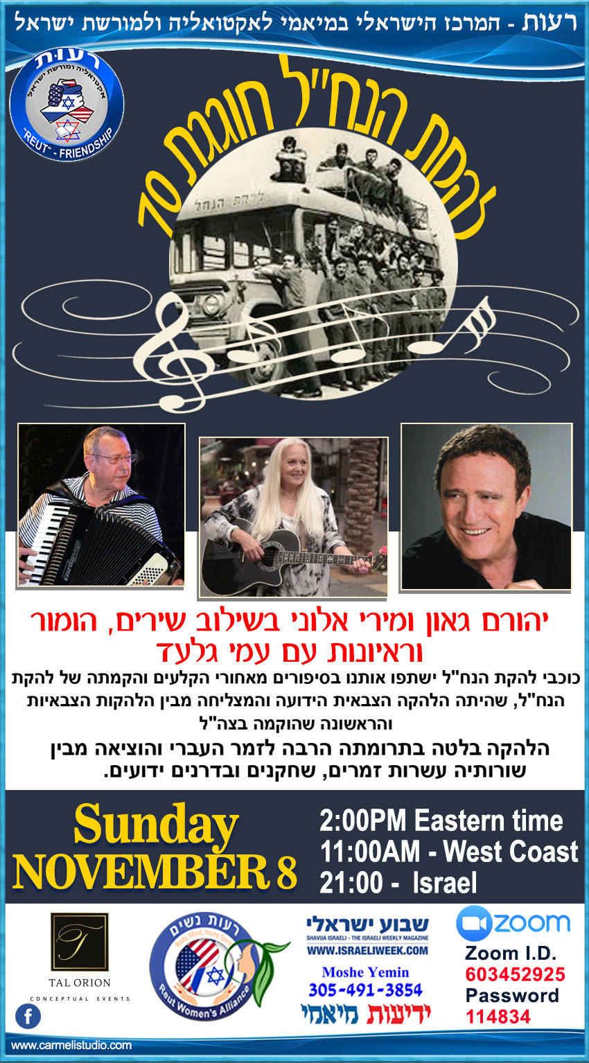 לקבלת אינפורמציה למפגשים נוספים ולהיכלל ברשימת התפוצה שלח/י אימייל עם שם מלא וטלפון: info@reutmiami.com