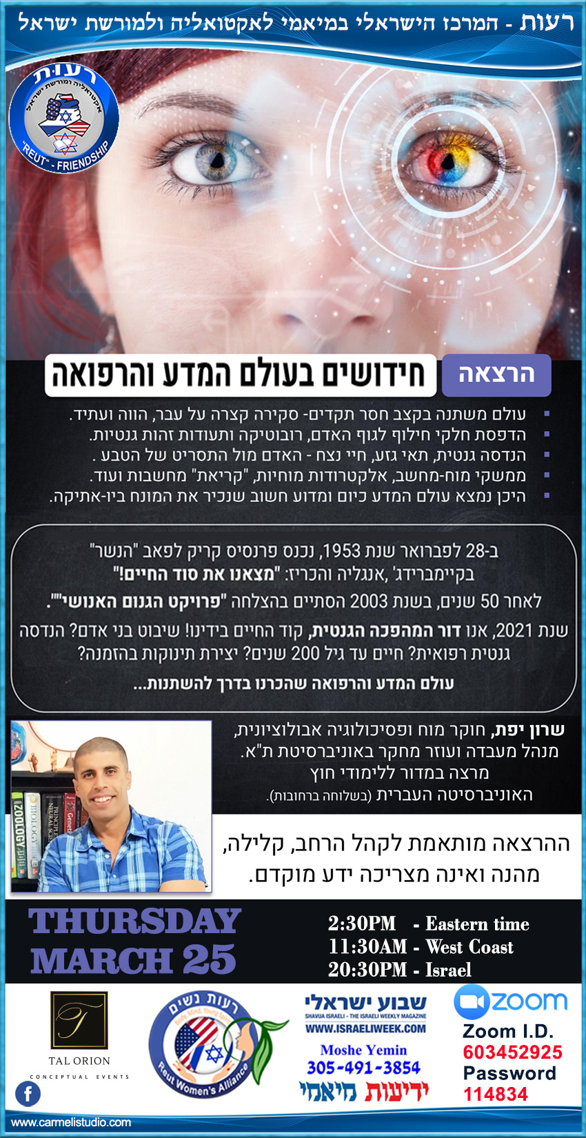 אודות שרון יפת והרצאותיו על חקר המוח לחצו כאן