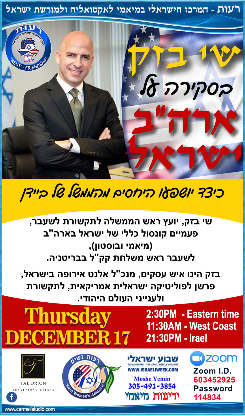 לקבלת אינפורמציה למפגשים נוספים ולהיכלל ברשימת התפוצה שלח/י אימייל עם שם מלא וטלפון: info@reutmiami.com