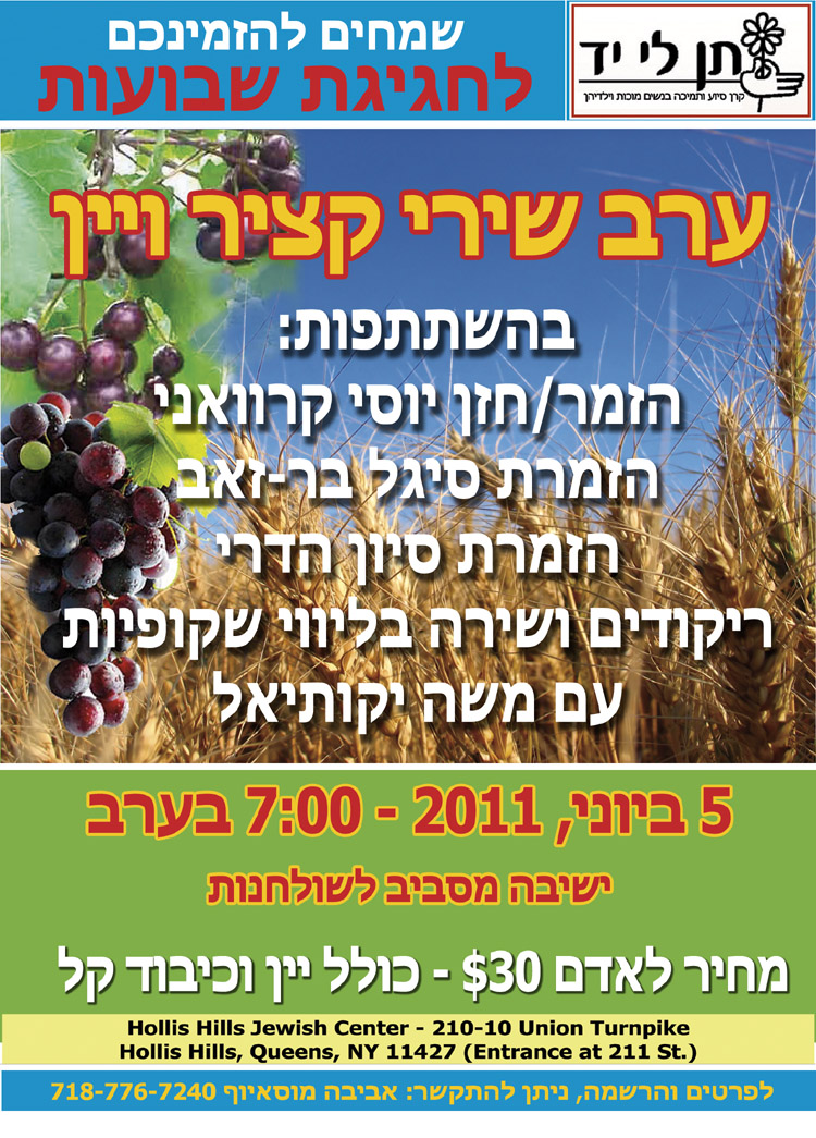 Ten Li Yad is a non profit organization and received the 501(c)3. Contributions are tax deductible as permitted by law.