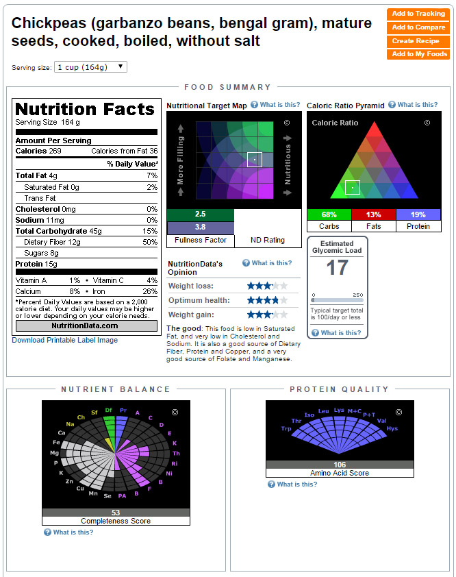 chickpeas contains 269 calories,